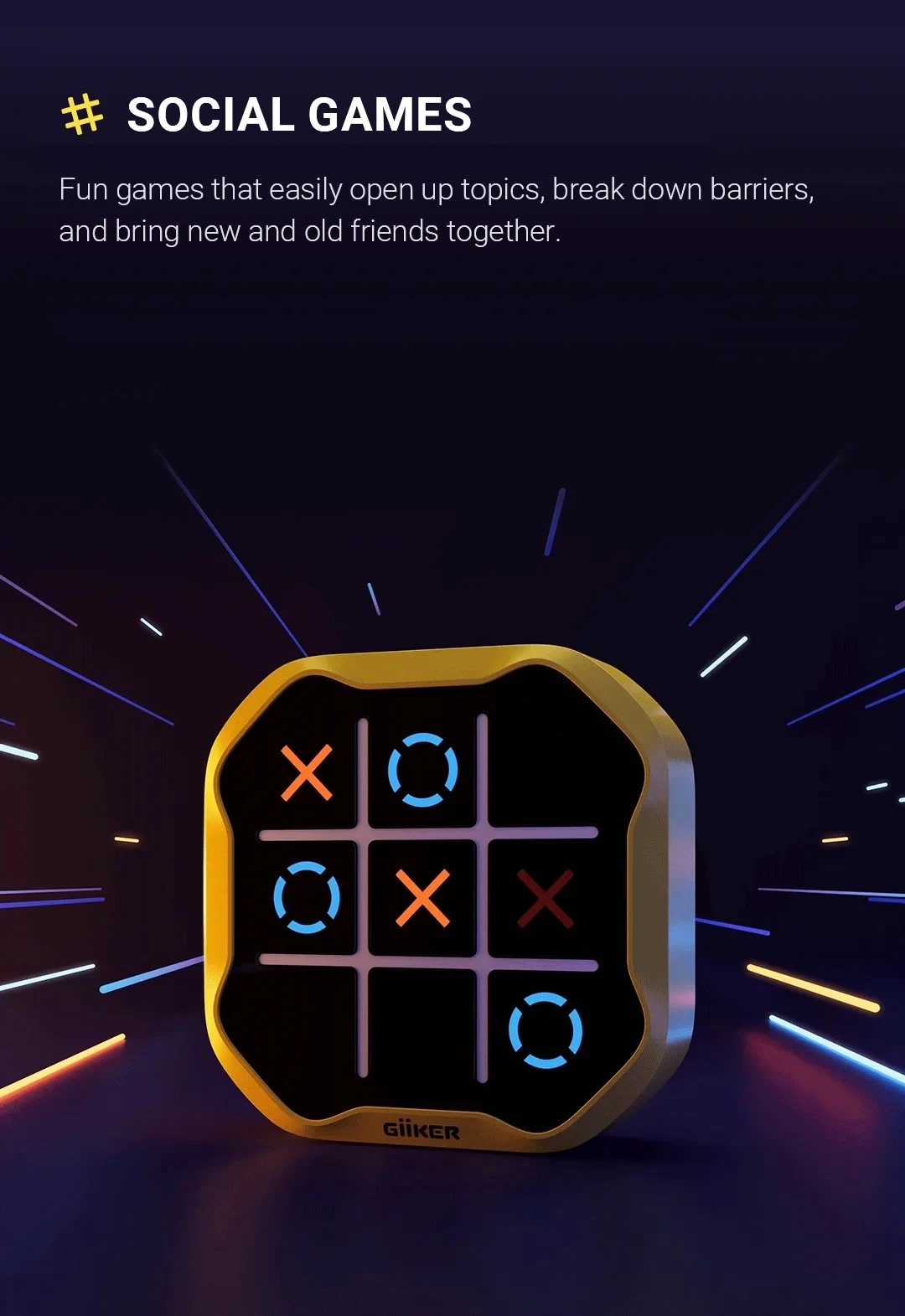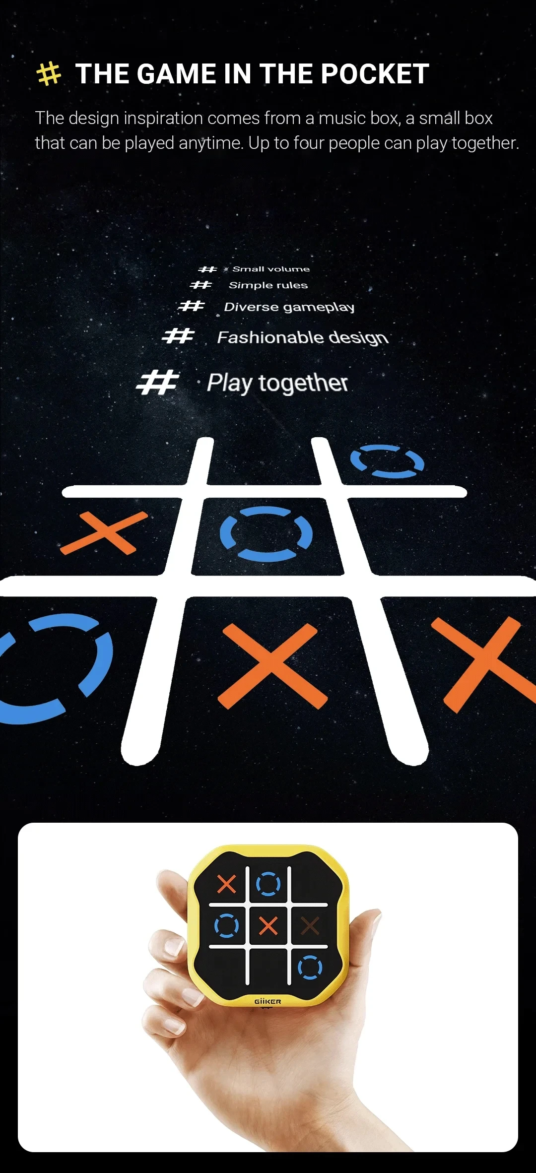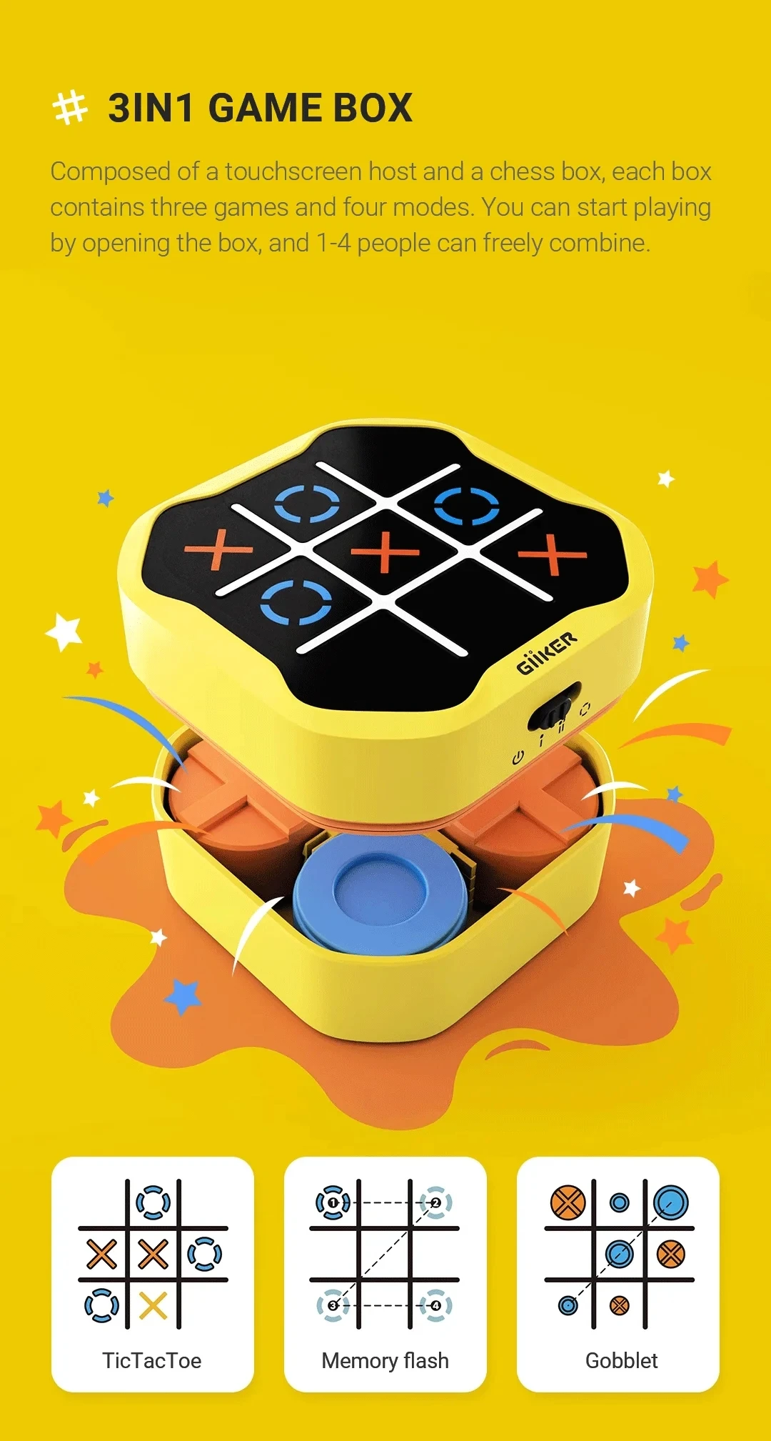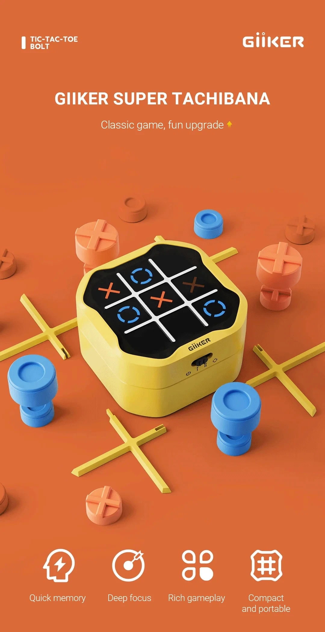 Élvezze a Tic-Tac-Toe témájú játékok hármasát egy dobozban, tökéletes 1-4 játékosból álló csoportok számára. Ideális családi játékestekhez vagy baráti összejövetelekhez, gyorsan kezdődő szórakozást kínál minden korosztály számára.