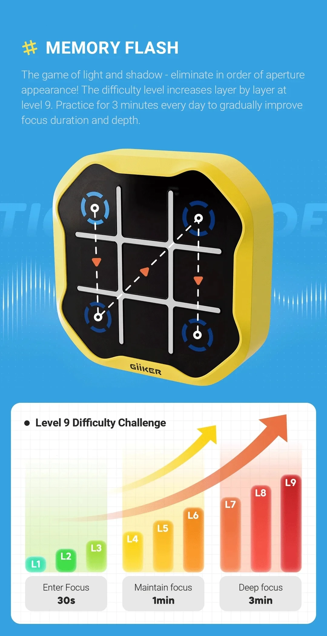 Tesztelje és javítsa a memóriáját a Memory Flash játékunkkal. Tartsa a fókuszt élesen, miközben azonosítja és felidézi a fénysorozatokat. Próbáld meg egyszerre törölni mind a 9 progresszív nehézséget, hogy legyőzd a játékot!